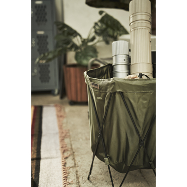 手軽に持ち運びができる、ジャバラ式で簡単に折り畳みができるフォールディングバスケット。