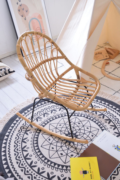 サイズ:W47×D75×H81×SH38 材質:ラタン 、スチール 仕上げ:ラタン (ラッカー塗装) スチール(粉体塗装)