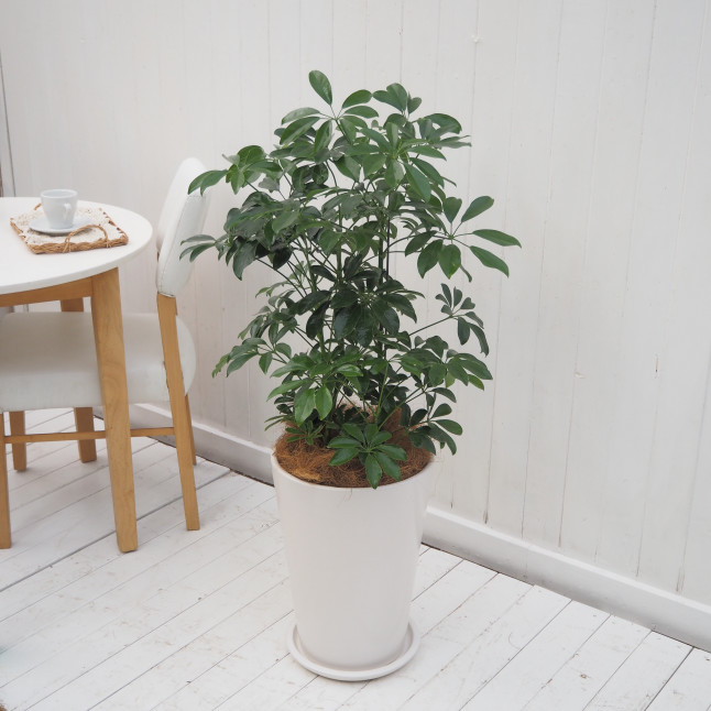 インテリア観葉 シェフレラ 信楽焼ポット白 水やりメーター付き
