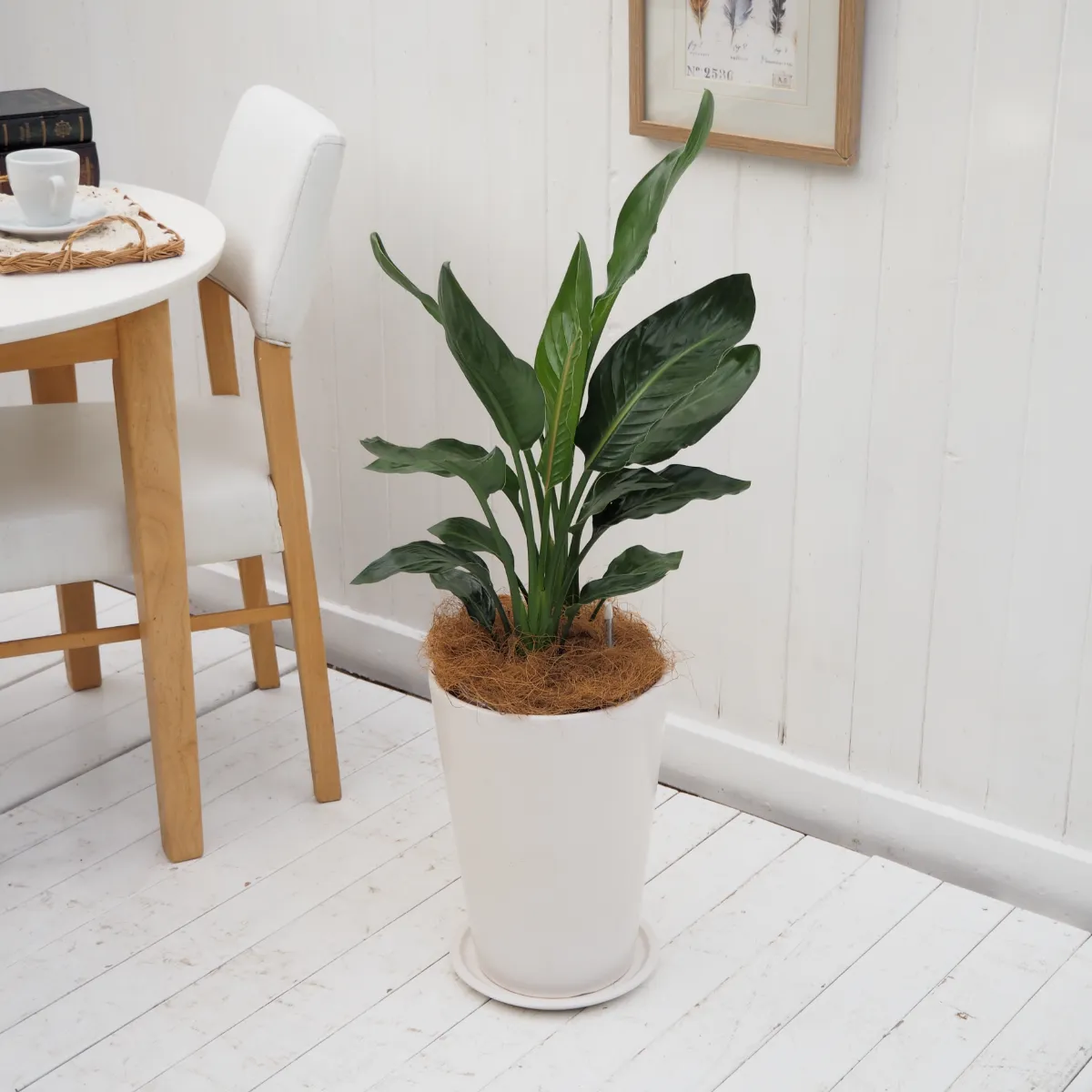 インテリア観葉 ストレリチア・レギネ 信楽焼ポット白 水やりメーター付き