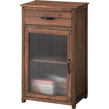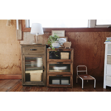 引き出しとガラス扉付き収納で、小物や日用品をすっきり整理できます。